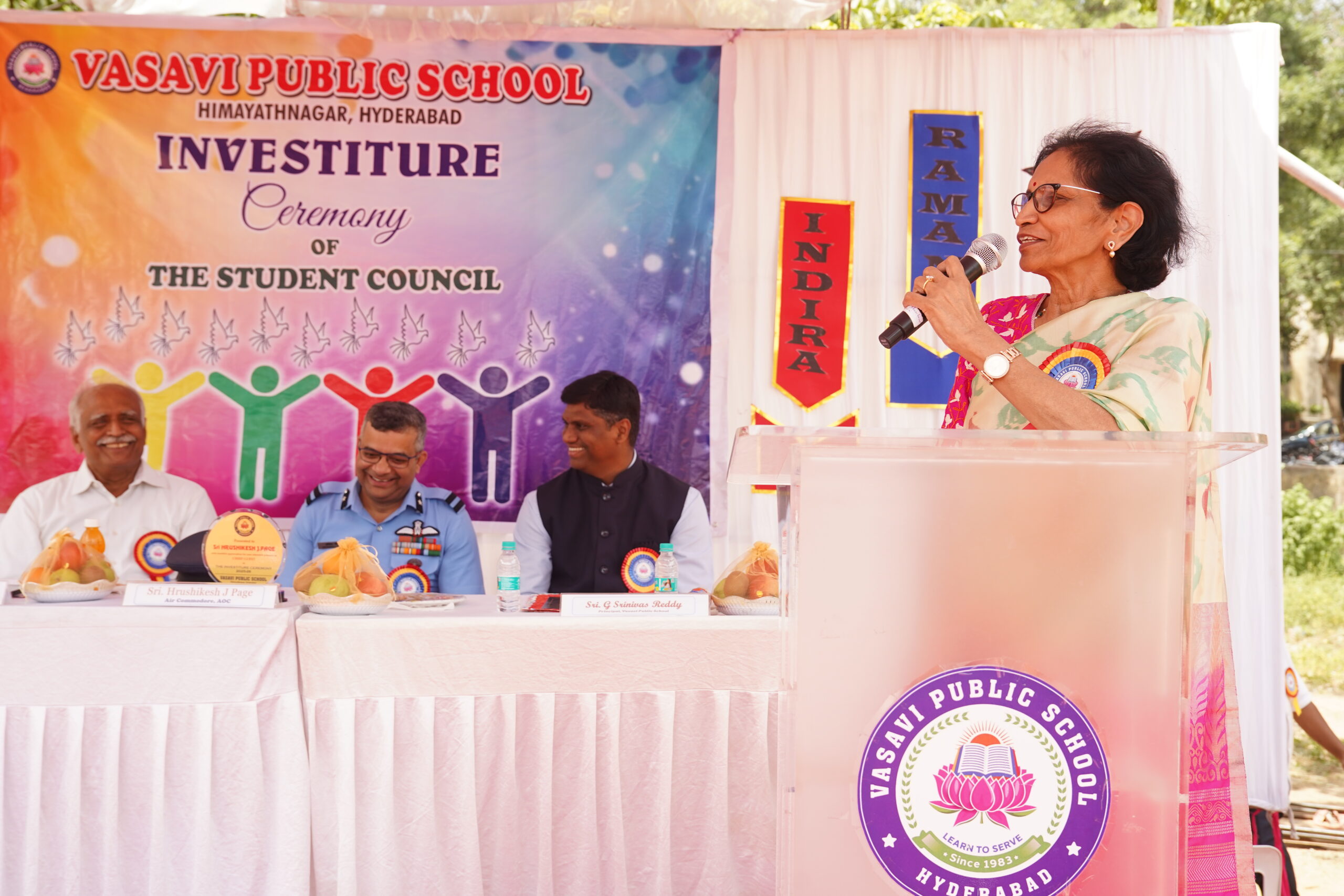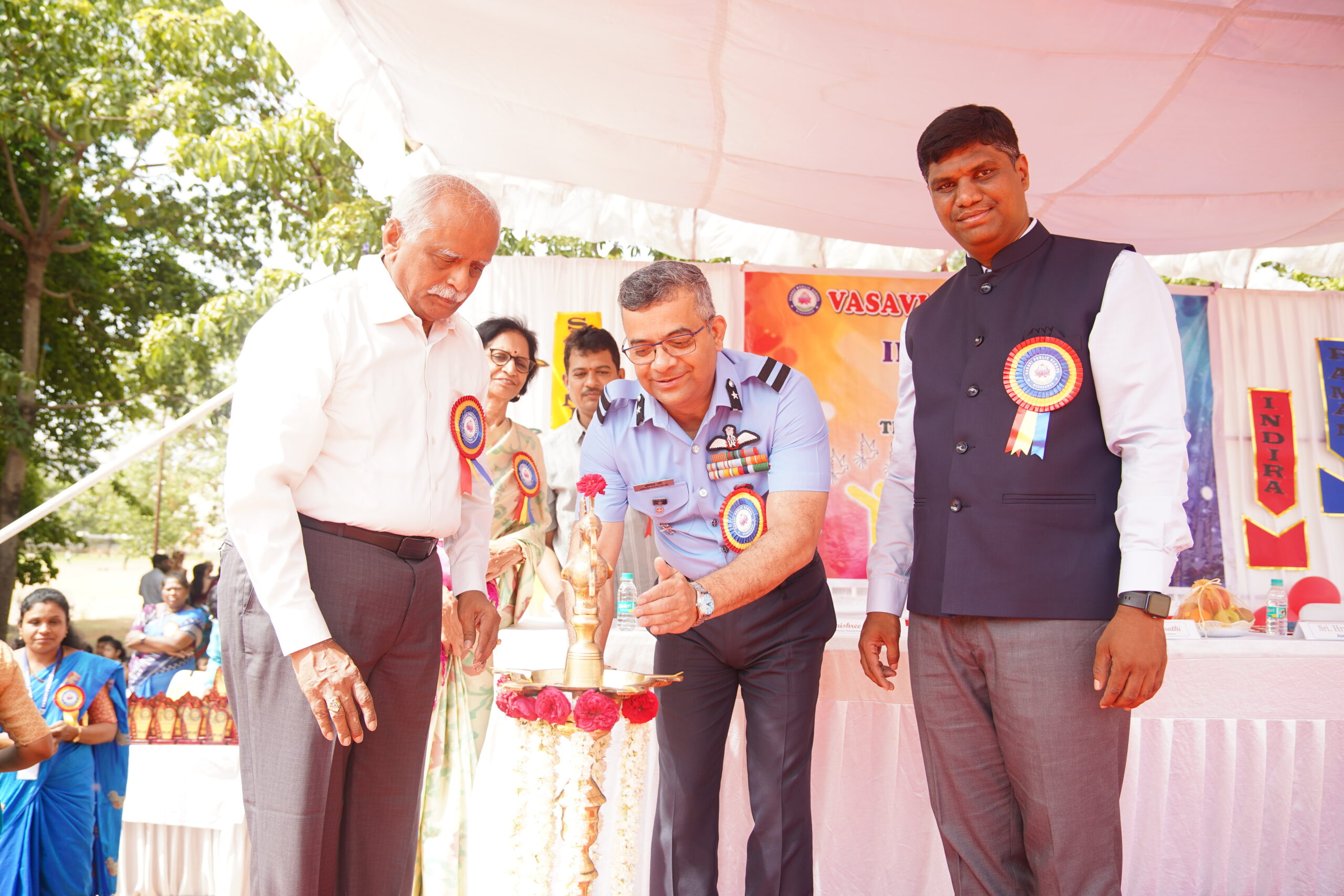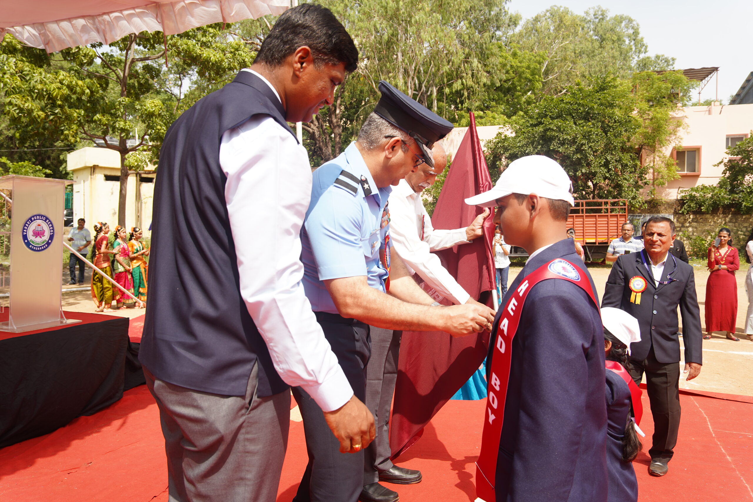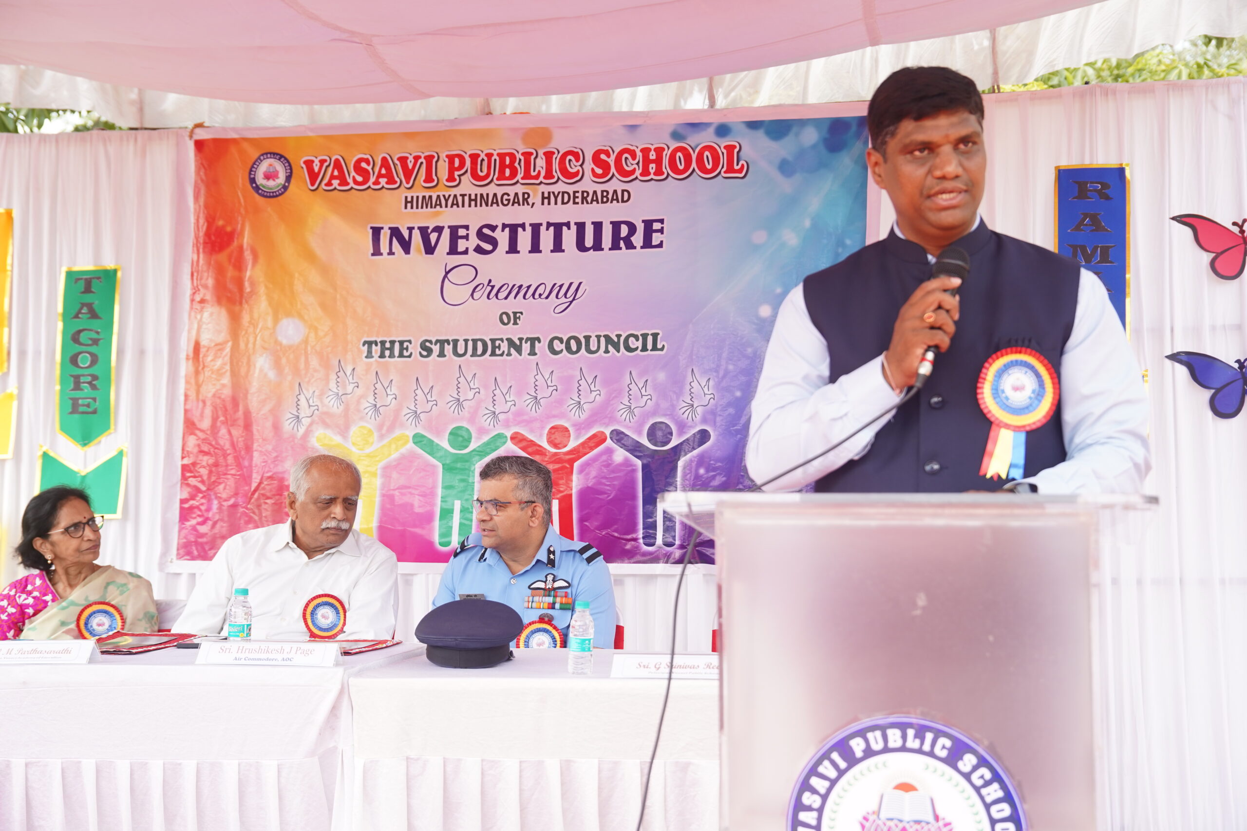 Vasavi Public School buzzed with excitement on June 28, 2025, as it held its much-anticipated Investiture Ceremony at the Government College of Physical Education. This significant event marked the formal induction of the new student council for the academic year 2025-26, empowering young leaders for the year ahead. The esteemed ceremony was greatly honored by the presence of Air Commodore Sri. Hrushikesh Jagannath Page, Air Officer Commanding who served as the Chief Guest. His inspiring presence adding a profound sense of gravitas and motivation to the occasion.