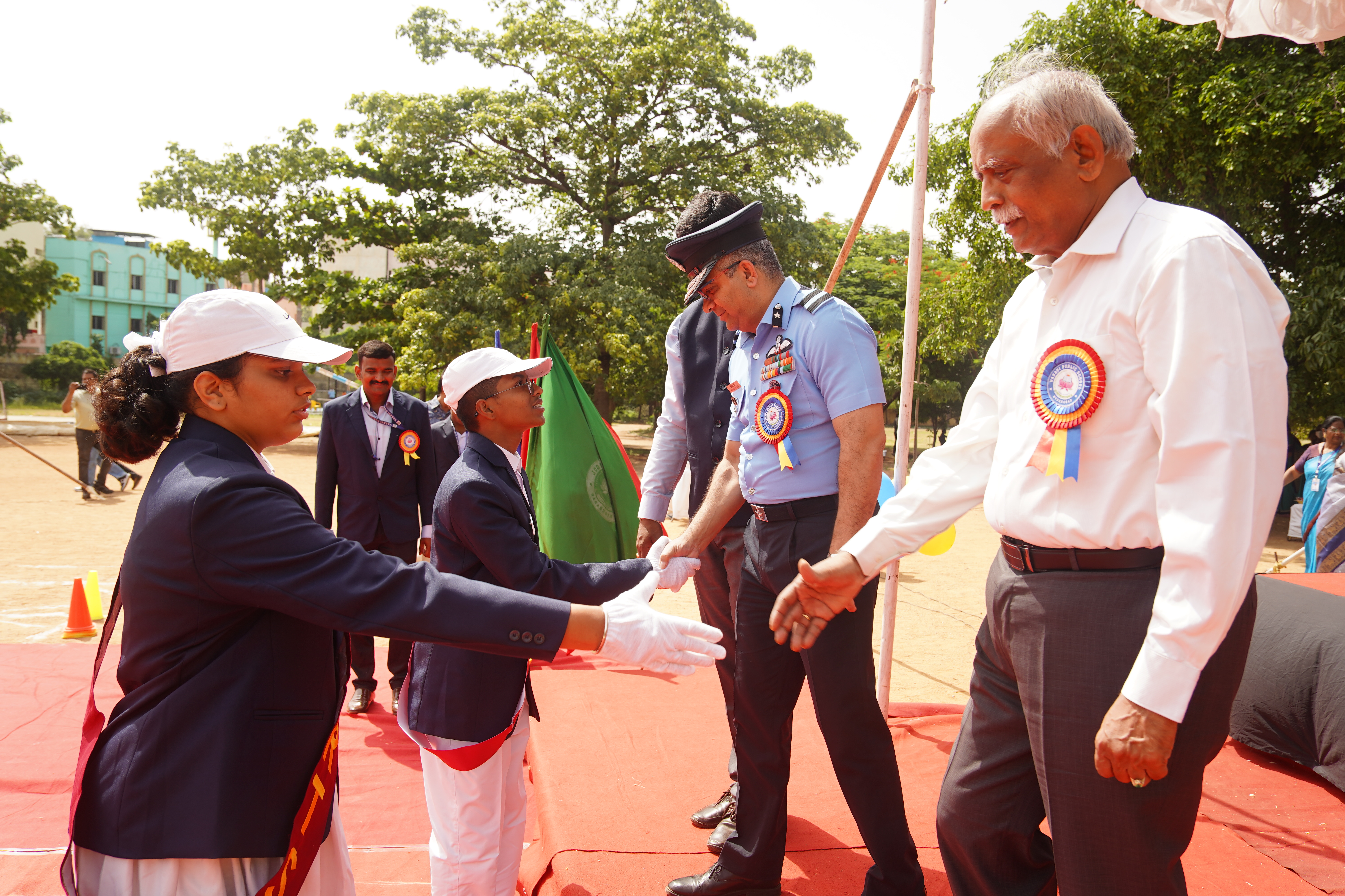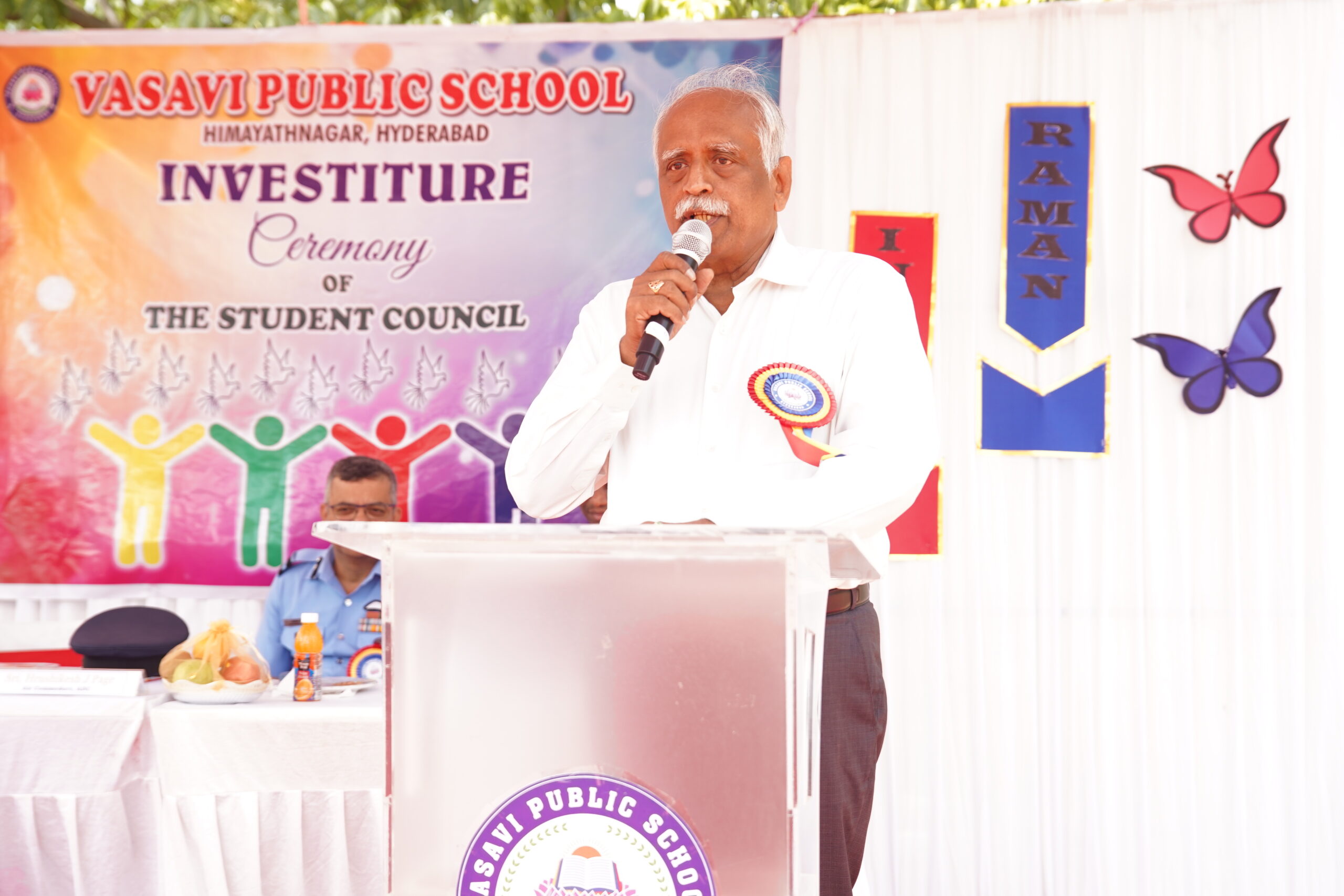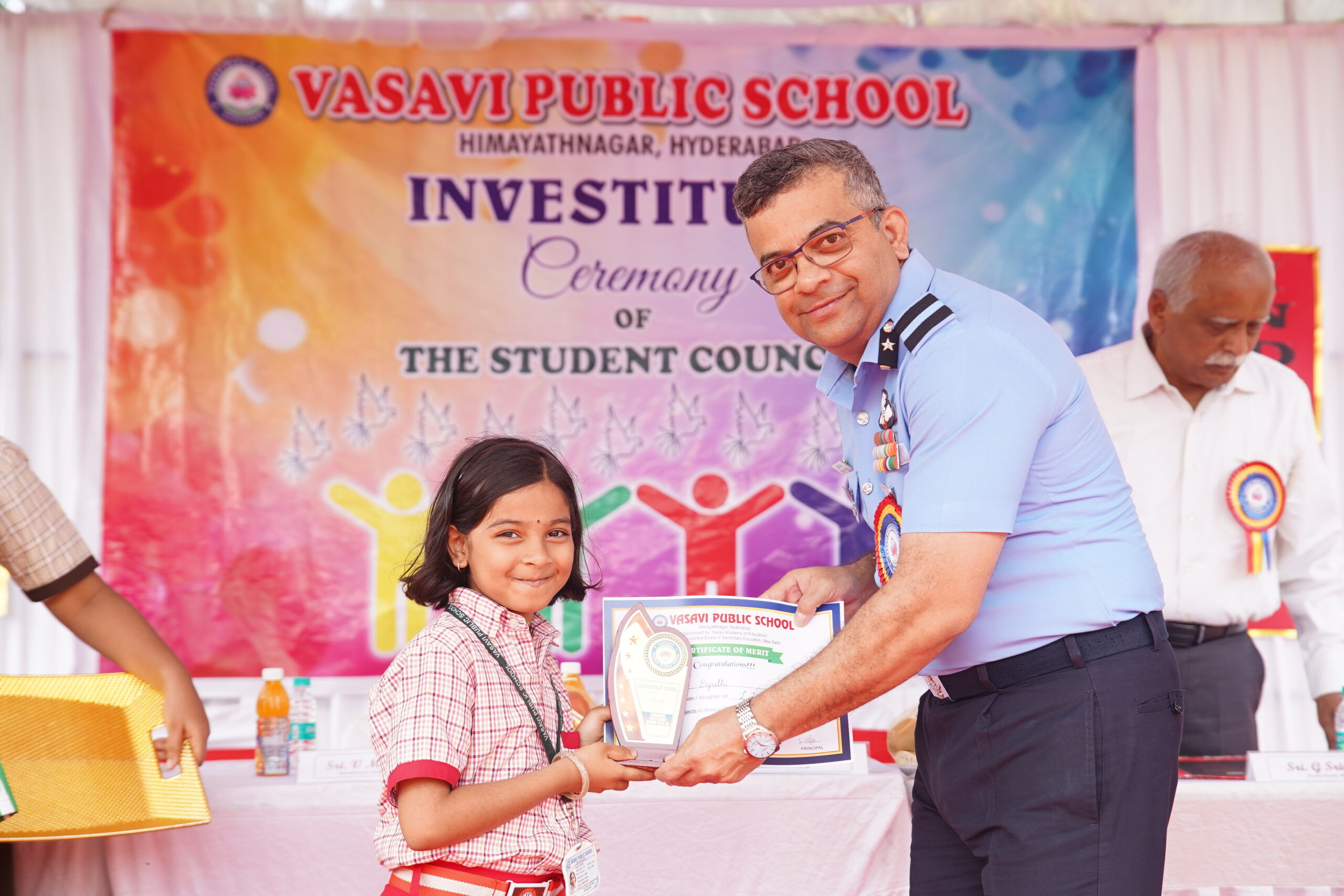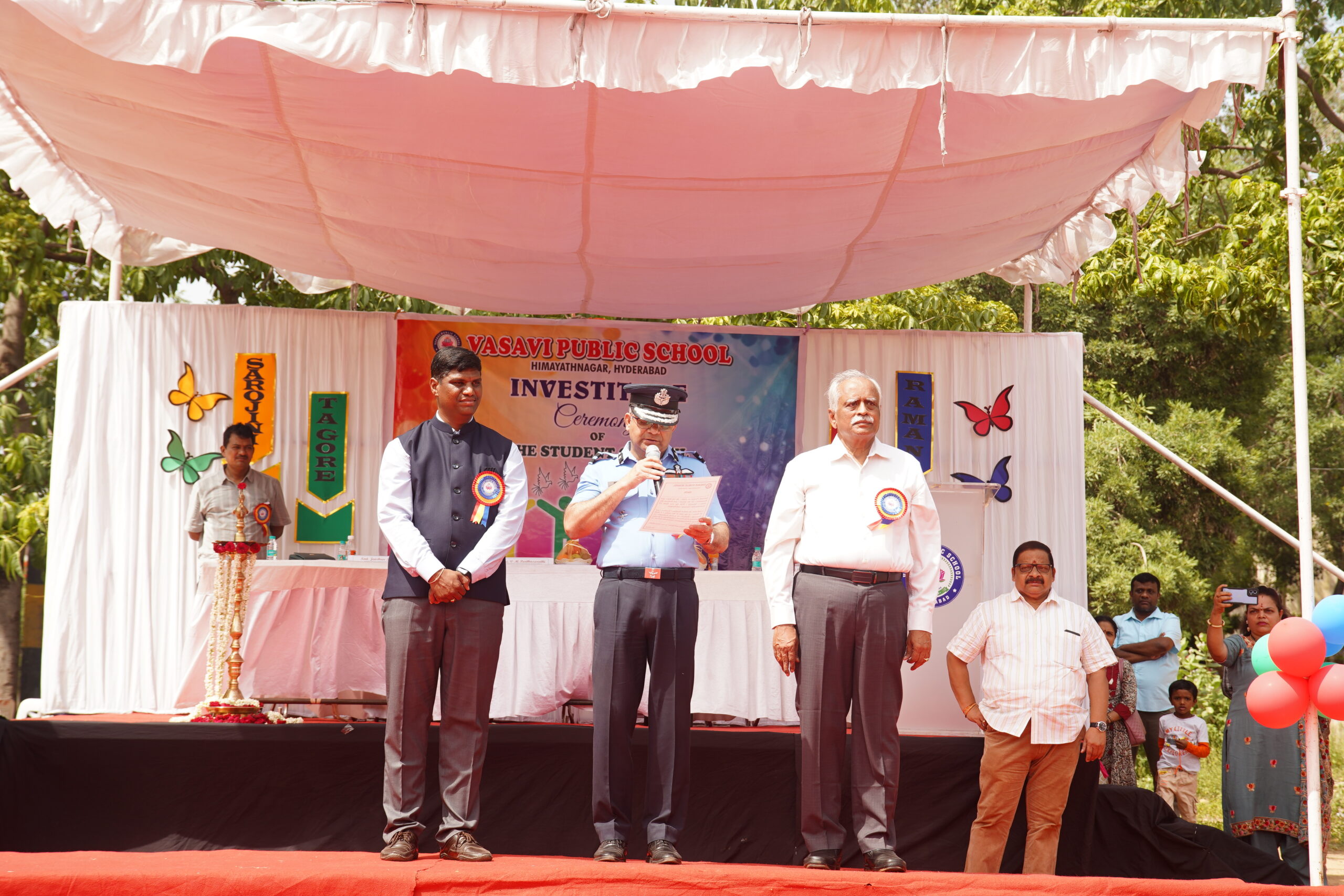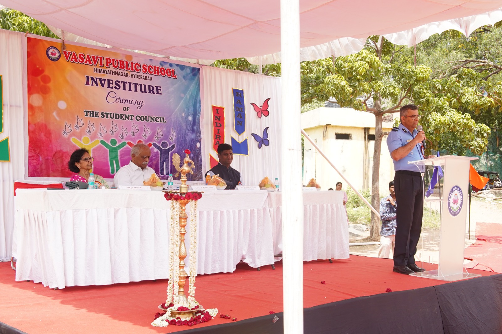 Vasavi Public School buzzed with excitement on June 28, 2025, as it held its much-anticipated Investiture Ceremony at the Government College of Physical Education. This significant event marked the formal induction of the new student council for the academic year 2025-26, empowering young leaders for the year ahead. The esteemed ceremony was greatly honored by the presence of Air Commodore Sri. Hrushikesh Jagannath Page, Air Officer Commanding who served as the Chief Guest. His inspiring presence adding a profound sense of gravitas and motivation to the occasion.