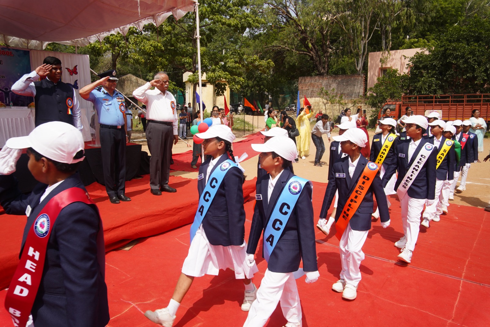The ceremony commenced with the symbolic lighting of the lamp, a revered tradition signifying the ushering in of knowledge and the dispelling of ignorance. This was followed by a truly impressive march past by the newly appointed student leaders. Exuding discipline and pride, their synchronized movements to the beat of the band captivated all present, setting a tone of commitment and readiness.