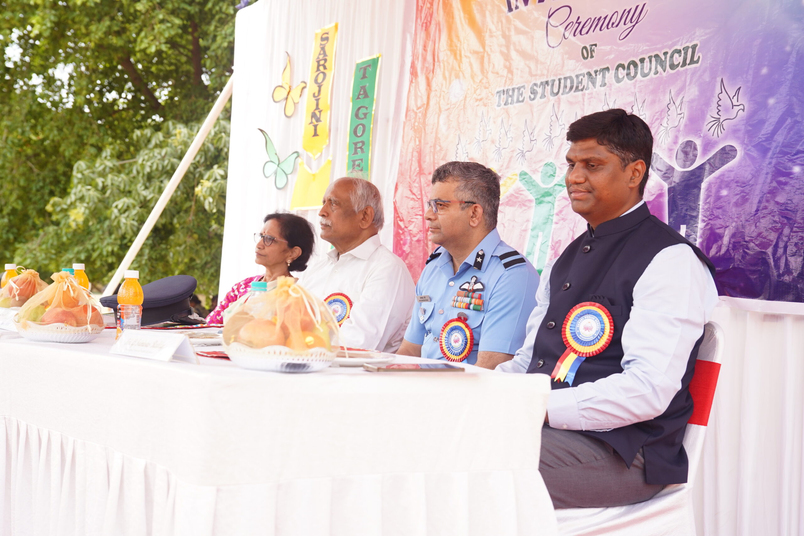 Addressing the eager assembly, Air Commodore Sri. Hrushikesh Jagannath Page delivered a remarkably insightful and motivating speech. He passionately emphasized the critical importance of leadership, responsibility, and perfection in the work. “Leadership is not merely about holding a position; it’s about inspiring others, making a positive impact, and rising up consistently he articulated, encouraging the young leaders to boldly embrace challenges and consistently strive for excellence in all their endeavours and advised the students to chase the passions in their lives. Following his inspiring words, Academic Director Smt. Jaishree Rao congratulated the students and strongly urged the student council to rigorously uphold the motto of the school – ‘Learn to Serve’ and focus on core values of the school in their every action.